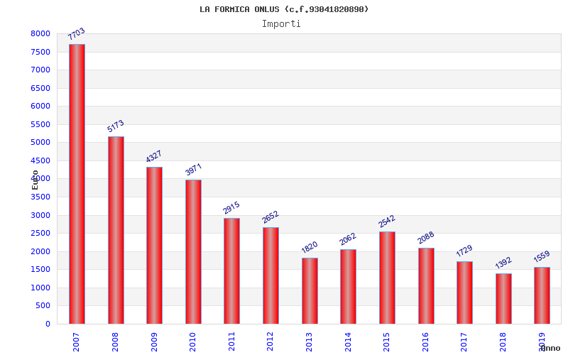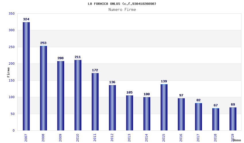 | Anno | Firme | Importi | Media | Naz. | Reg. | Prov. | Comu. |