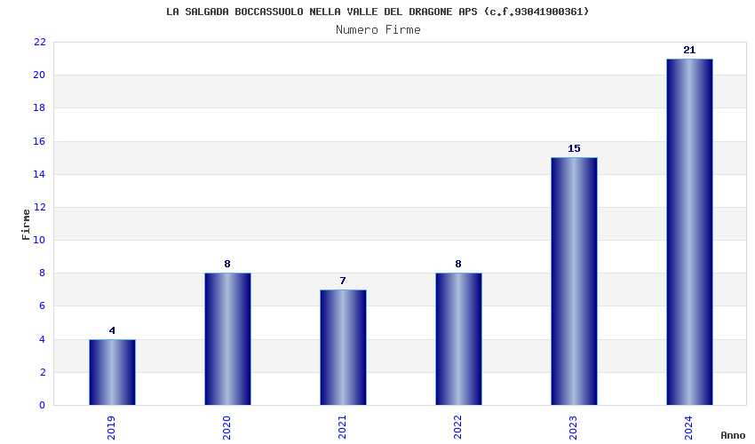 | Anno | Firme | Importi | Media | Naz. | Reg. | Prov. | Comu. |