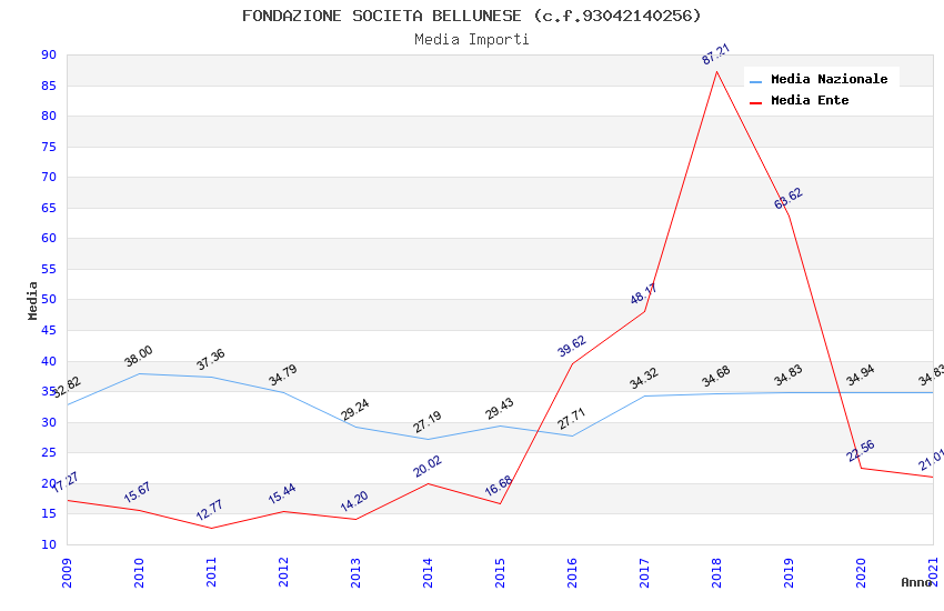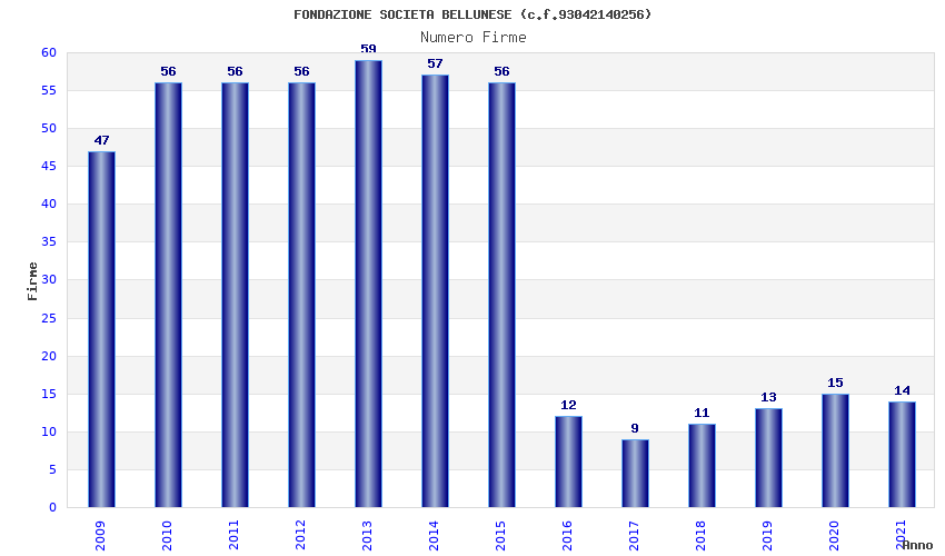 | Anno | Firme | Importi | Media | Naz. | Reg. | Prov. | Comu. |