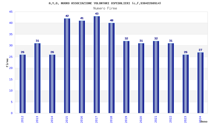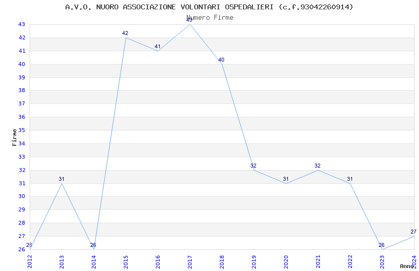 | 2017 | 43 | 1.164,73 | 27,09 | 31.995 | 694 | 90 | 26 |