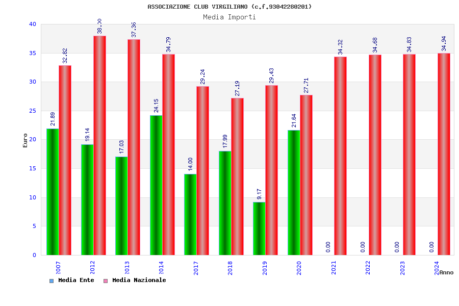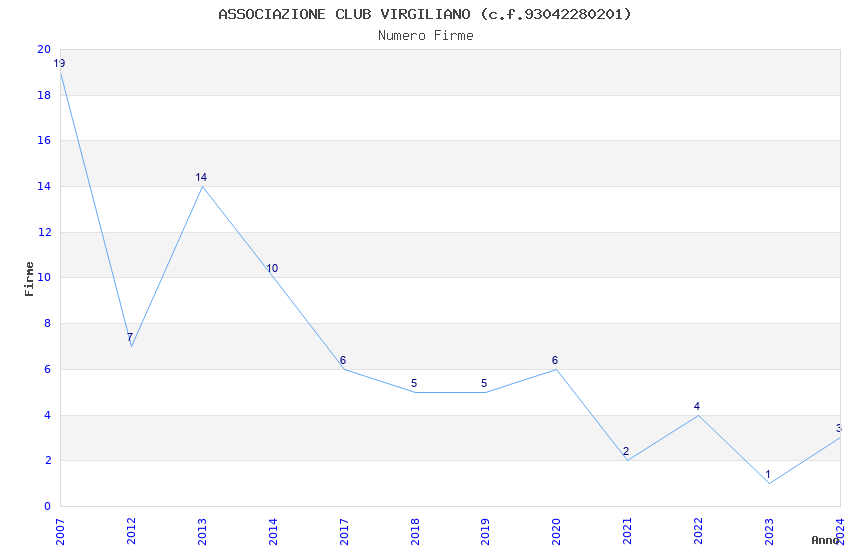 | Anno | Firme | Importi | Media | Naz. | Reg. | Prov. | Comu. |