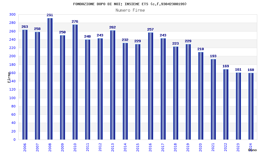 | Anno | Firme | Importi | Media | Naz. | Reg. | Prov. | Comu. |