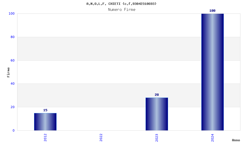 | Anno | Firme | Importi | Media | Naz. | Reg. | Prov. | Comu. |