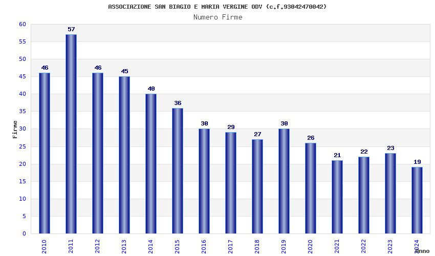 | Anno | Firme | Importi | Media | Naz. | Reg. | Prov. | Comu. |