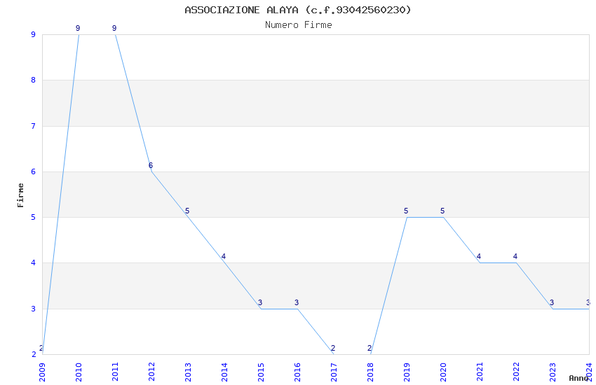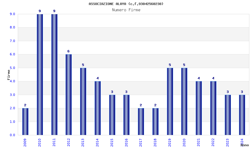 | Anno | Firme | Importi | Media | Naz. | Reg. | Prov. | Comu. |