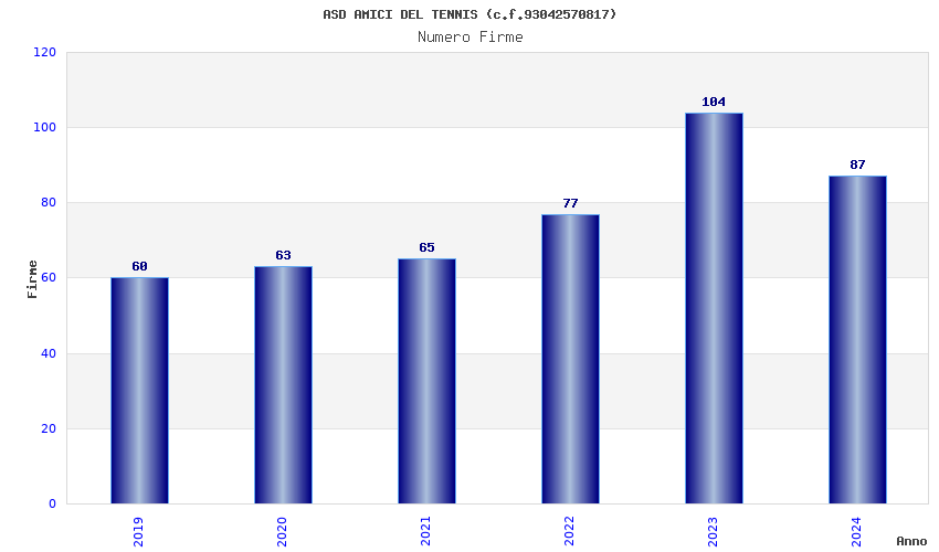 | Anno | Firme | Importi | Media | Naz. | Reg. | Prov. | Comu. |