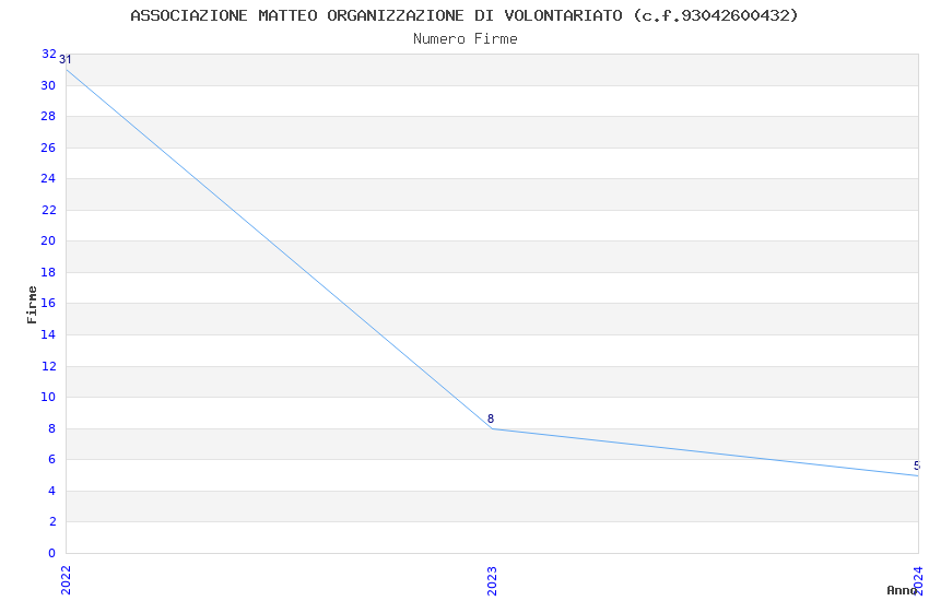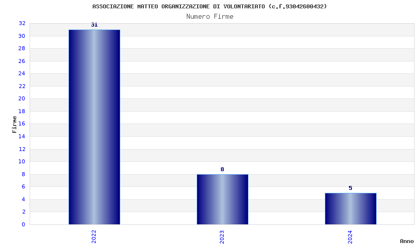 | Anno | Firme | Importi | Media | Naz. | Reg. | Prov. | Comu. |