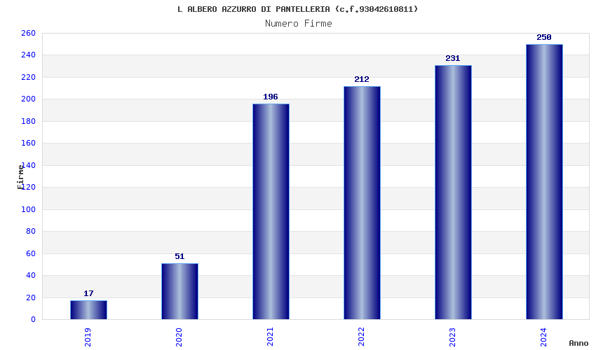 | Anno | Firme | Importi | Media | Naz. | Reg. | Prov. | Comu. |