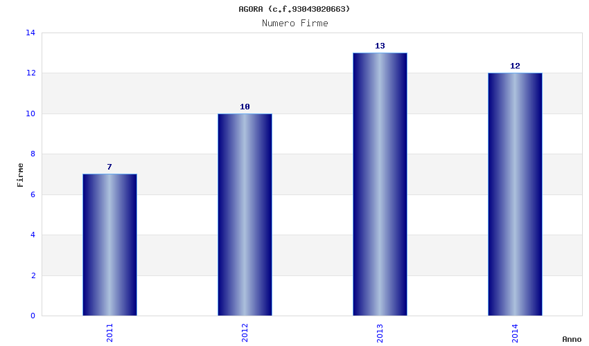 | Anno | Firme | Importi | Media | Naz. | Reg. | Prov. | Comu. |