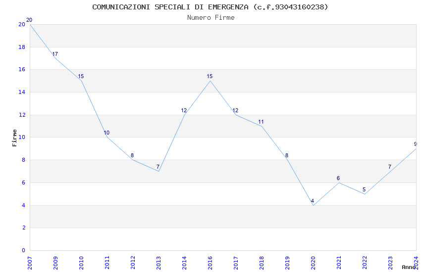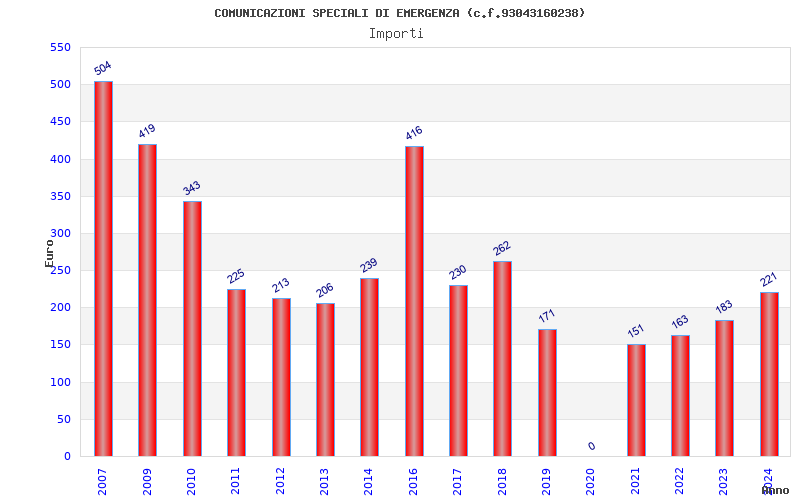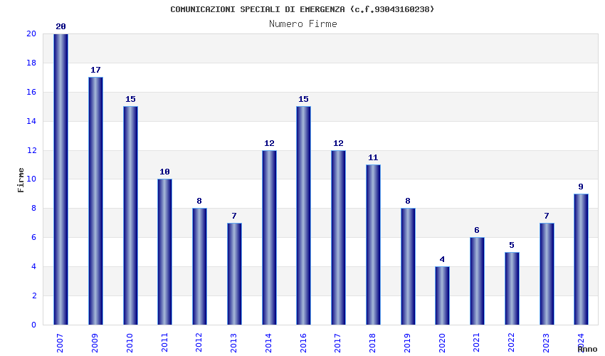 | Anno | Firme | Importi | Media | Naz. | Reg. | Prov. | Comu. |