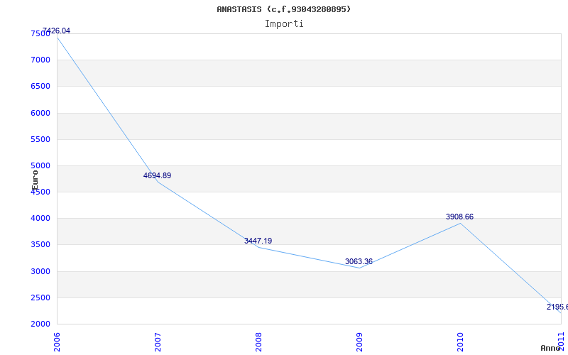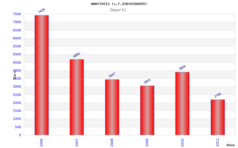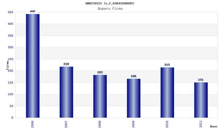 | Anno | Firme | Importi | Media | Naz. | Reg. | Prov. | Comu. |