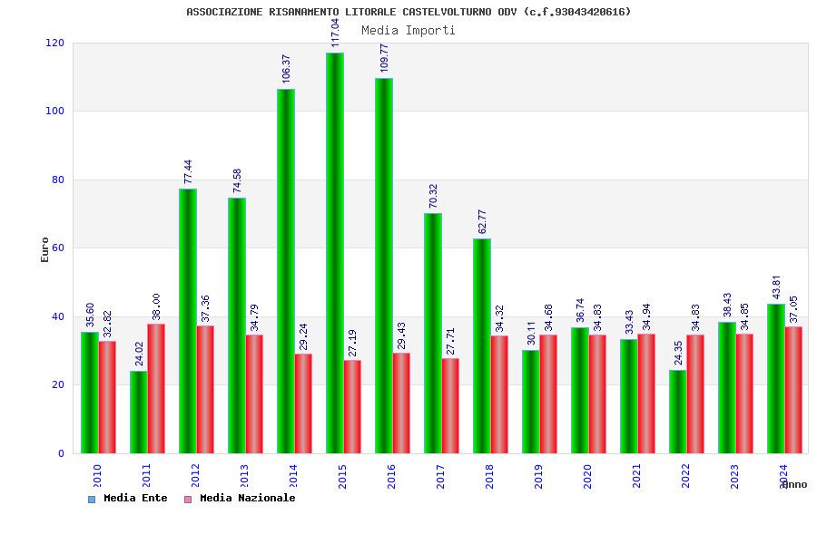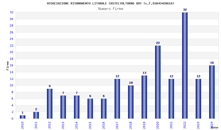 | Anno | Firme | Importi | Media | Naz. | Reg. | Prov. | Comu. |