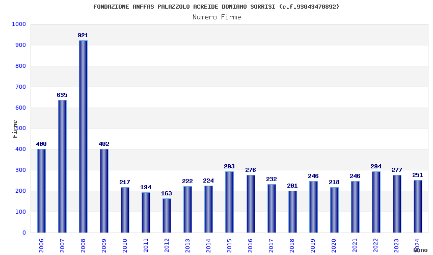 Anno Firme Importi Media Naz. Reg. Prov. Comu.