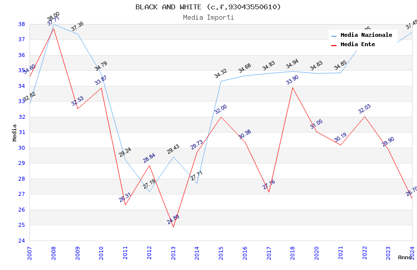 | Anno | Firme | Importi | Media | Naz. | Reg. | Prov. | Comu. |