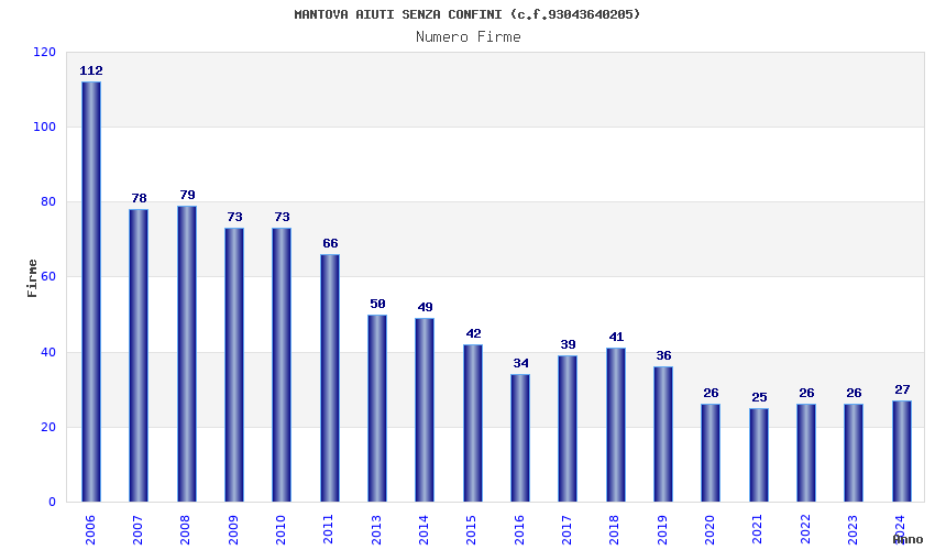 | 2006 | 112 | 7.990,34 | 71,34 | 5.412 | 1.434 | 36 | 3 |
