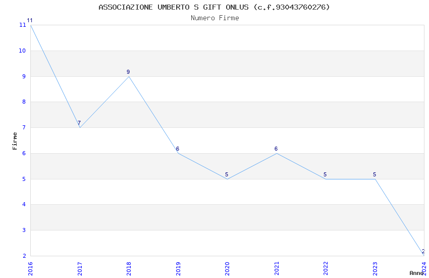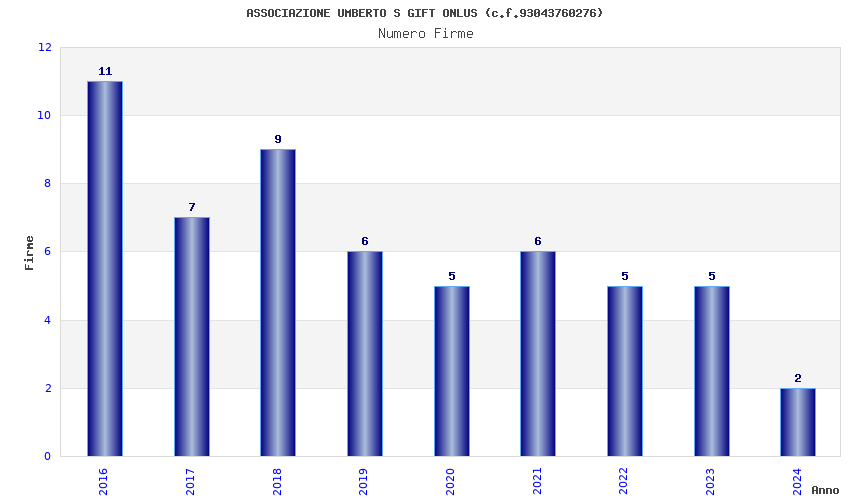 | Anno | Firme | Importi | Media | Naz. | Reg. | Prov. | Comu. |