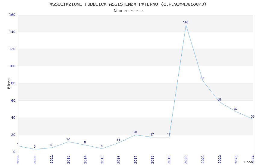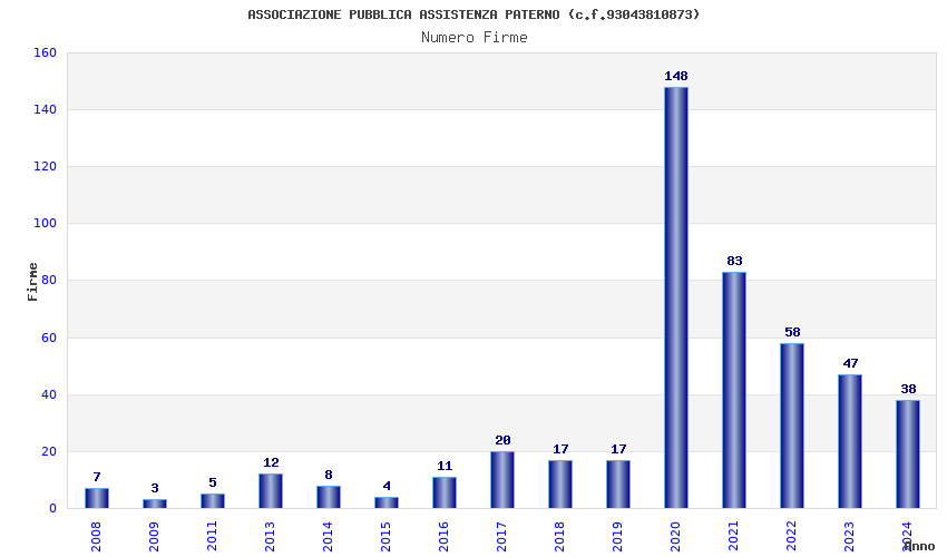 | Anno | Firme | Importi | Media | Naz. | Reg. | Prov. | Comu. |