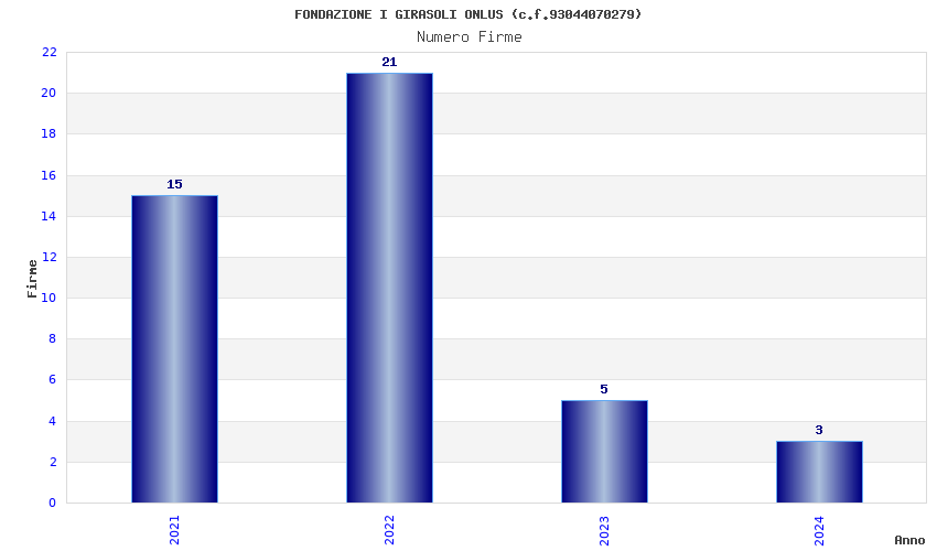 | Anno | Firme | Importi | Media | Naz. | Reg. | Prov. | Comu. |