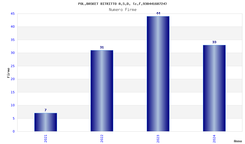 | Anno | Firme | Importi | Media | Naz. | Reg. | Prov. | Comu. |