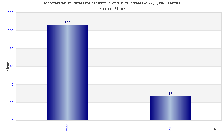 | Anno | Firme | Importi | Media | Naz. | Reg. | Prov. | Comu. |