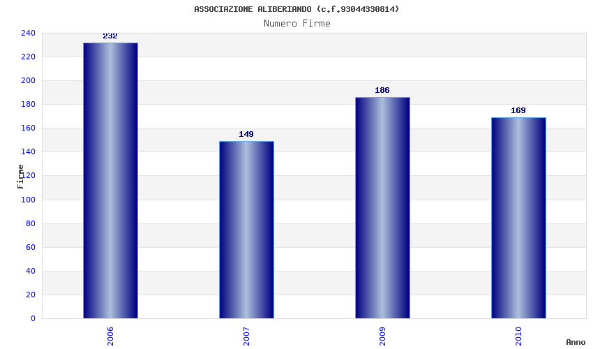 | Anno | Firme | Importi | Media | Naz. | Reg. | Prov. | Comu. |