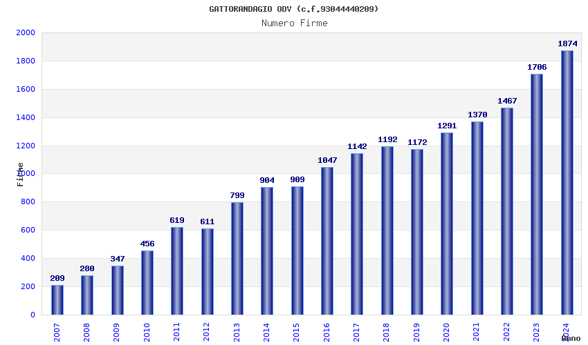 | Anno | Firme | Importi | Media | Naz. | Reg. | Prov. | Comu. |