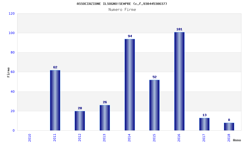 | Anno | Firme | Importi | Media | Naz. | Reg. | Prov. | Comu. |