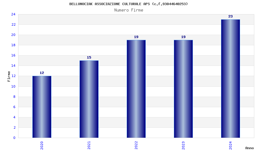 | Anno | Firme | Importi | Media | Naz. | Reg. | Prov. | Comu. |