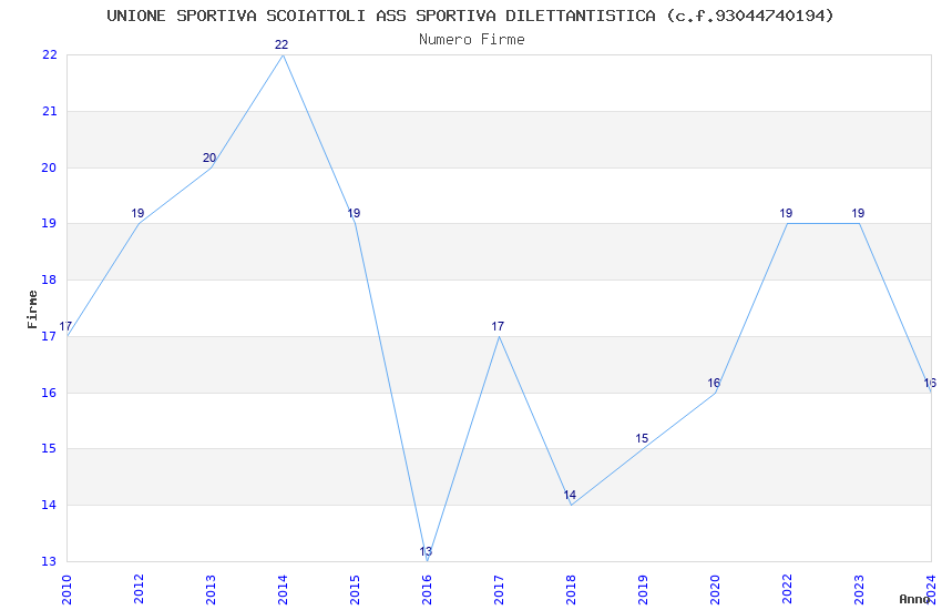 | 2016 | 13 | 616,68 | 47,44 | 39.129 | 8.355 | 382 | 12 |