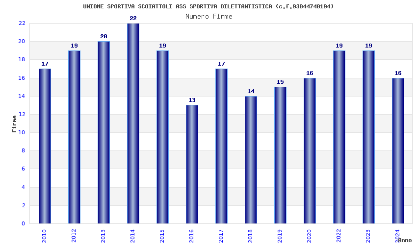 | 2014 | 22 | 777,25 | 35,33 | 34.039 | 7.289 | 325 | 10 |