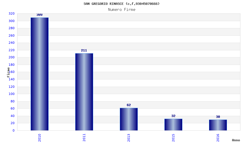 | Anno | Firme | Importi | Media | Naz. | Reg. | Prov. | Comu. |