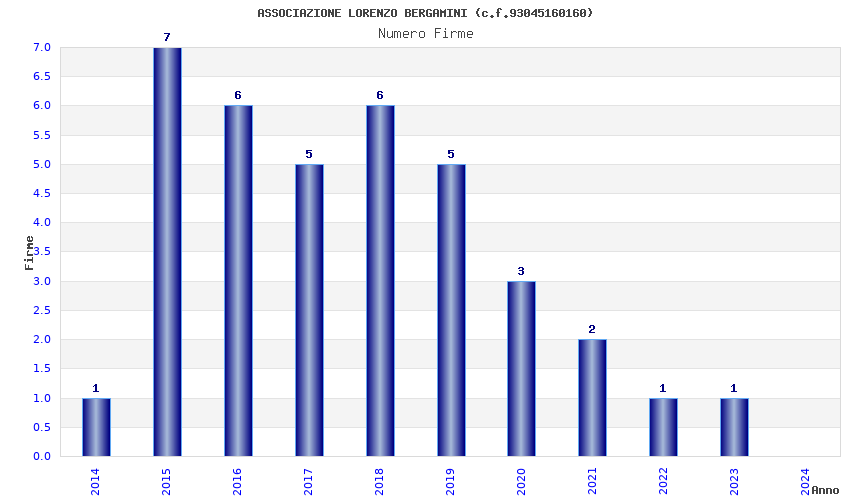 | Anno | Firme | Importi | Media | Naz. | Reg. | Prov. | Comu. |