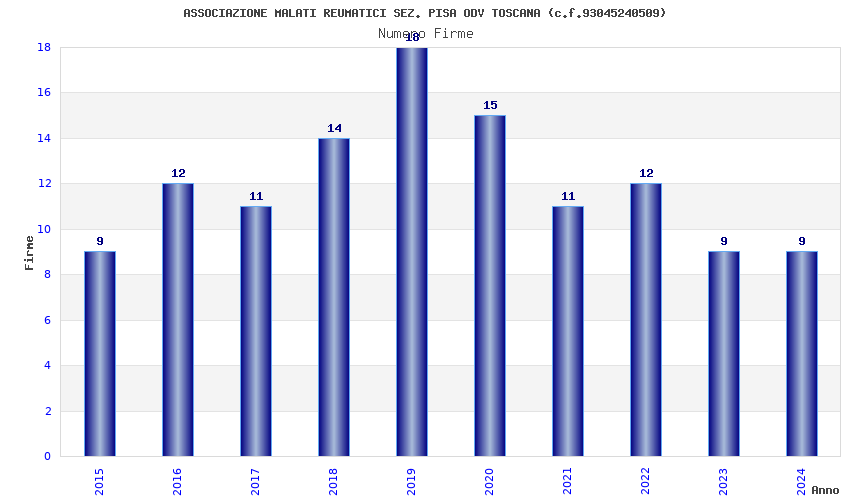 | Anno | Firme | Importi | Media | Naz. | Reg. | Prov. | Comu. |