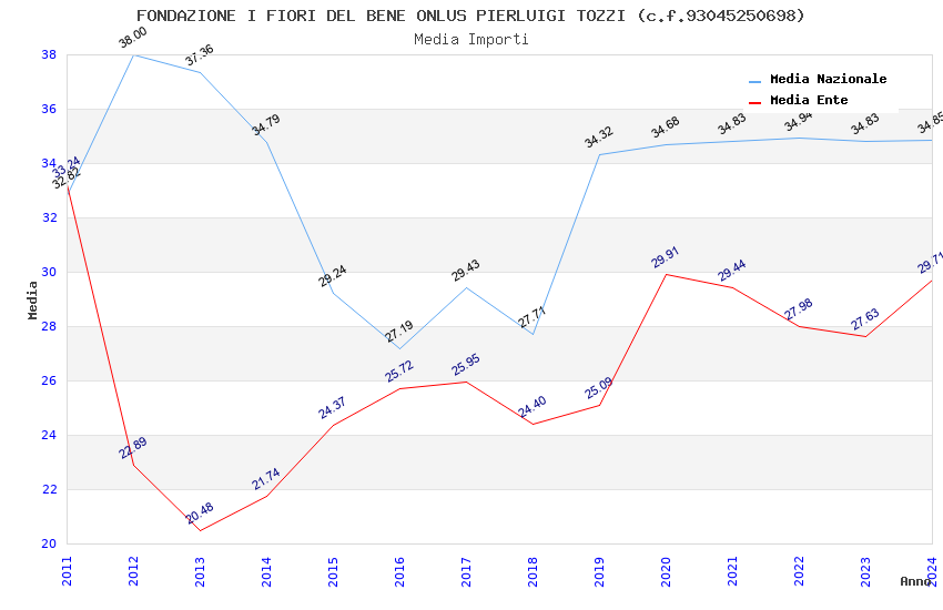 | Anno | Firme | Importi | Media | Naz. | Reg. | Prov. | Comu. |