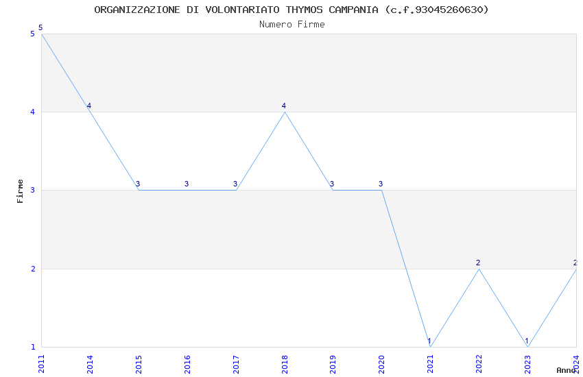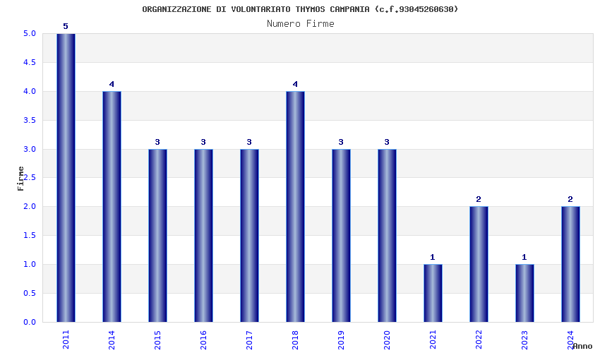 | Anno | Firme | Importi | Media | Naz. | Reg. | Prov. | Comu. |