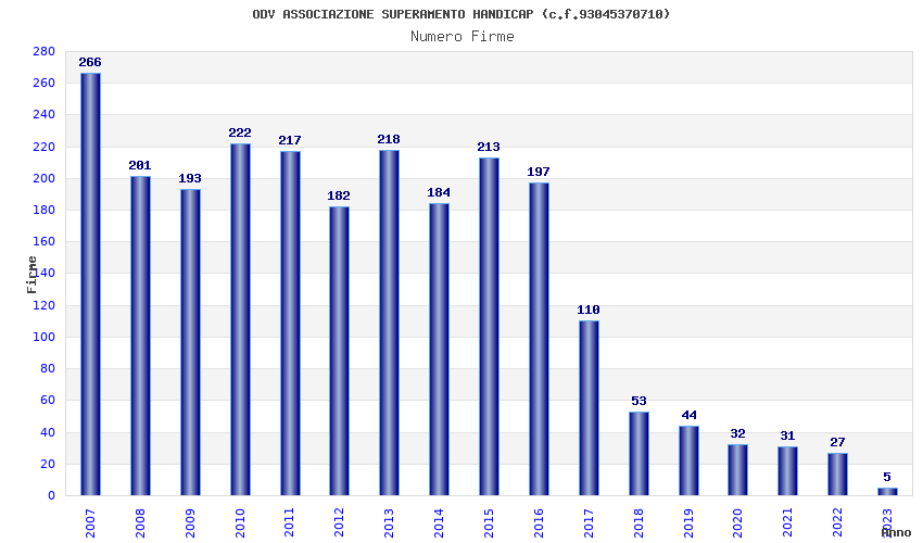 | Anno | Firme | Importi | Media | Naz. | Reg. | Prov. | Comu. |