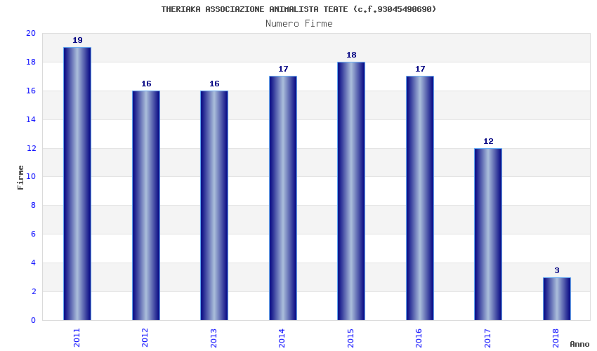 | Anno | Firme | Importi | Media | Naz. | Reg. | Prov. | Comu. |