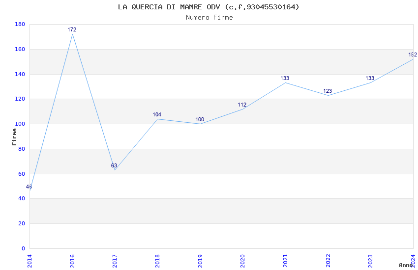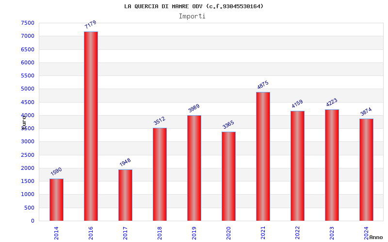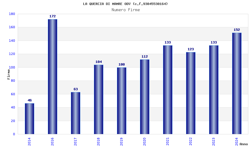 | Anno | Firme | Importi | Media | Naz. | Reg. | Prov. | Comu. |
