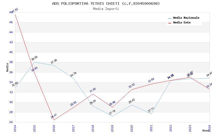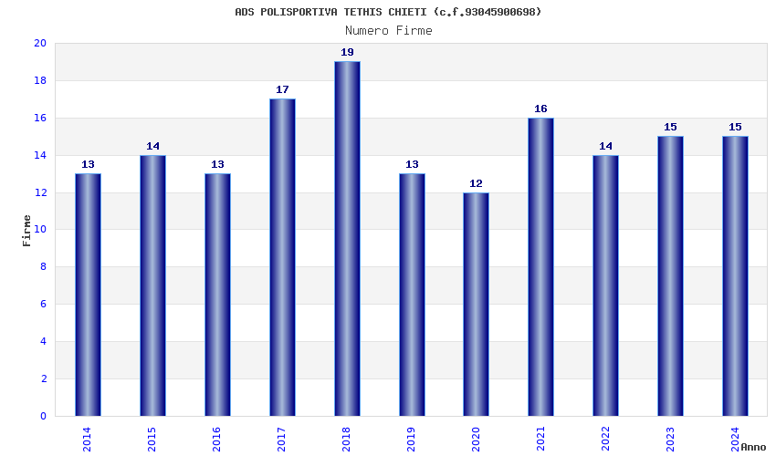 | Anno | Firme | Importi | Media | Naz. | Reg. | Prov. | Comu. |