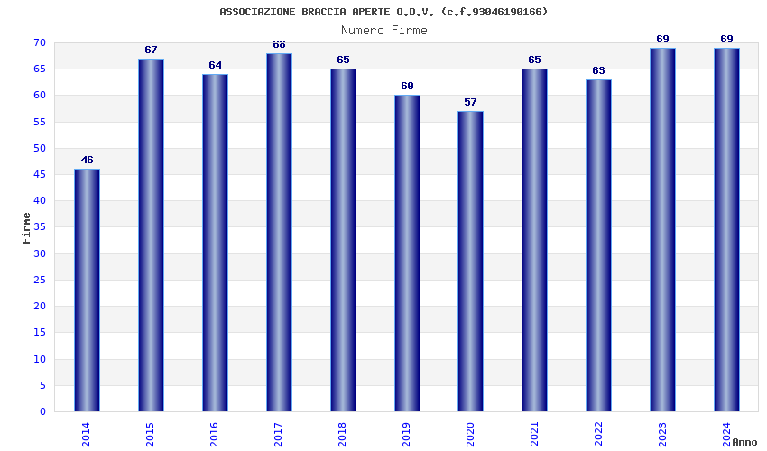 | Anno | Firme | Importi | Media | Naz. | Reg. | Prov. | Comu. |