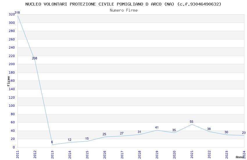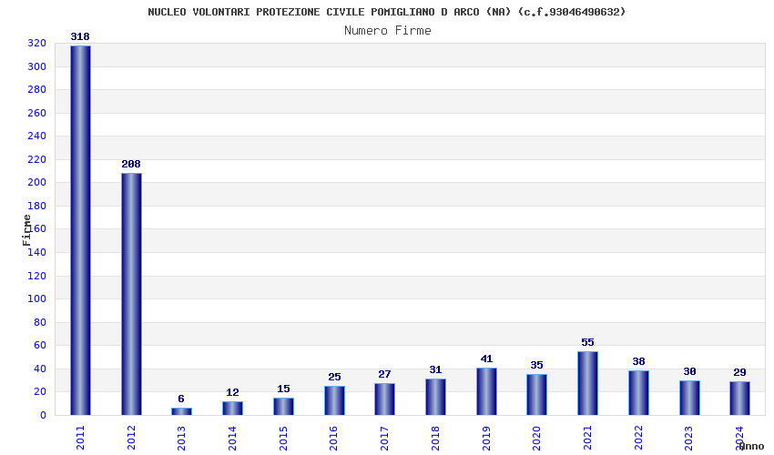 | Anno | Firme | Importi | Media | Naz. | Reg. | Prov. | Comu. |