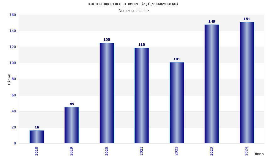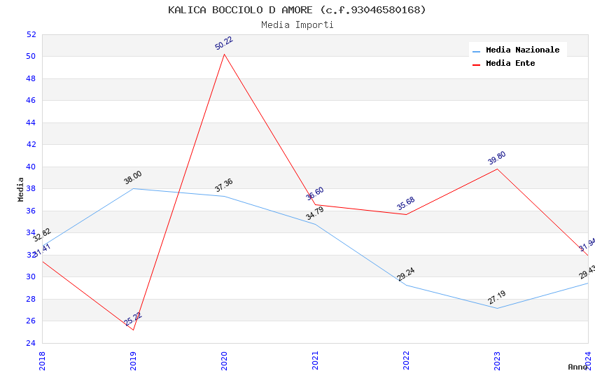 | Anno | Firme | Importi | Media | Naz. | Reg. | Prov. | Comu. |