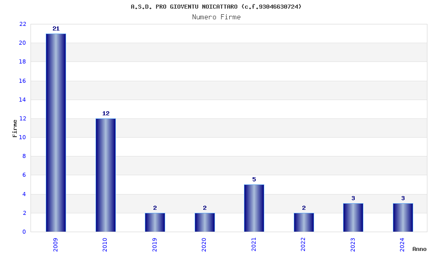 | Anno | Firme | Importi | Media | Naz. | Reg. | Prov. | Comu. |