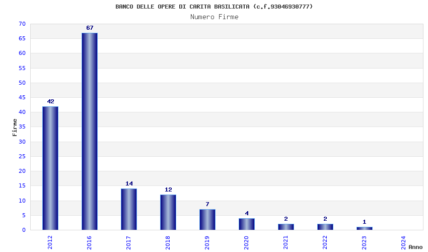 | Anno | Firme | Importi | Media | Naz. | Reg. | Prov. | Comu. |