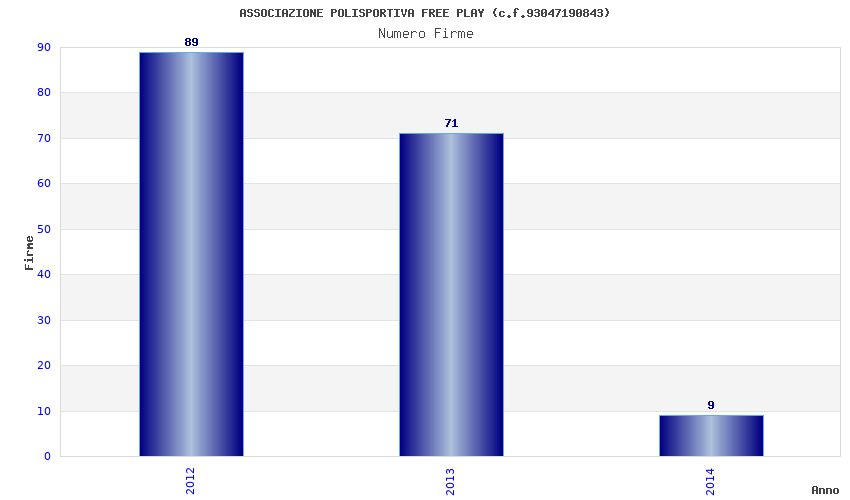 | Anno | Firme | Importi | Media | Naz. | Reg. | Prov. | Comu. |