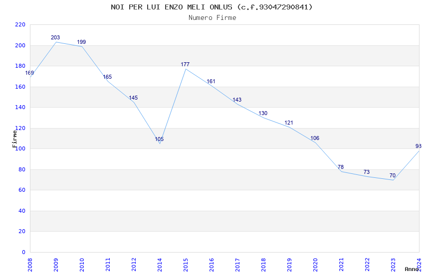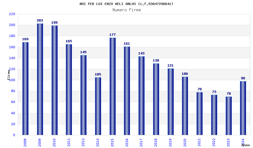 | Anno | Firme | Importi | Media | Naz. | Reg. | Prov. | Comu. |