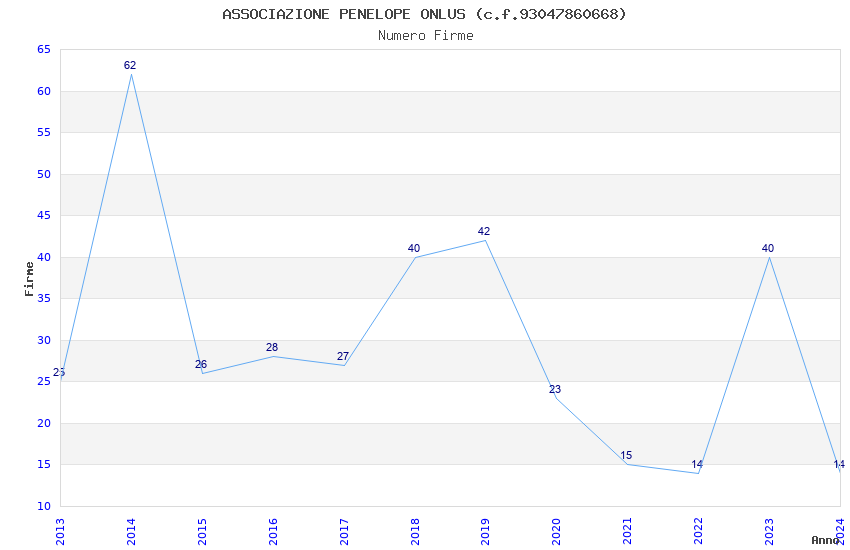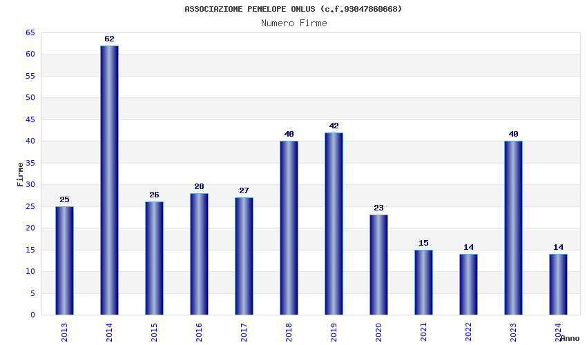 | 2014 | 62 | 1.368,50 | 22,07 | 26.870 | 462 | 132 | 53 |