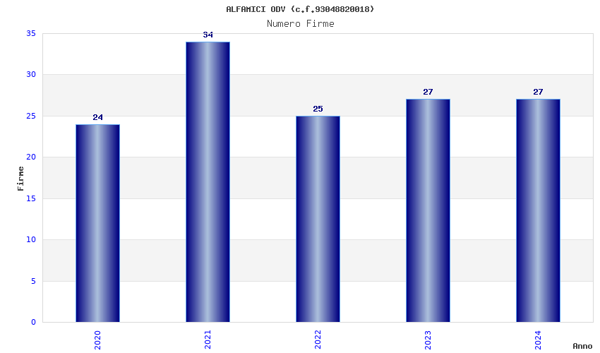 | Anno | Firme | Importi | Media | Naz. | Reg. | Prov. | Comu. |