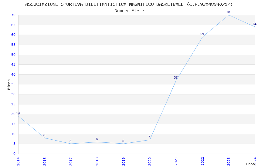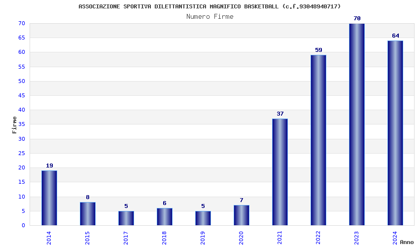 | 2023 | 70 | 2.667,22 | 38,10 | 18.997 | 1.007 | 170 | 9 |