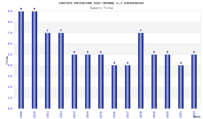 | Anno | Firme | Importi | Media | Naz. | Reg. | Prov. | Comu. |
